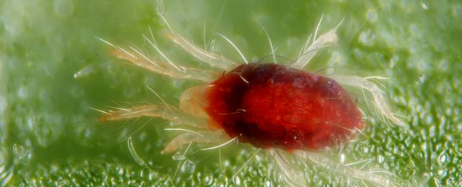 Άκαρι, ανήκει στην οικογένεια Tetranychidae. Μορφολογία: Δυο μαύρες κηλίδες [...]